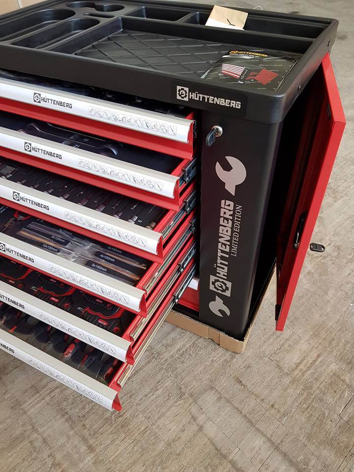Questo set completo di attrezzi della Hüttenberg offre una soluzione completa con 259 pezzi, ideale per professionisti e hobbisti esigenti. Il mobile robusto e spazioso è dotato di 8 cassetti e 6 scomparti, garantendo un'organizzazione ottimale degli strumenti.